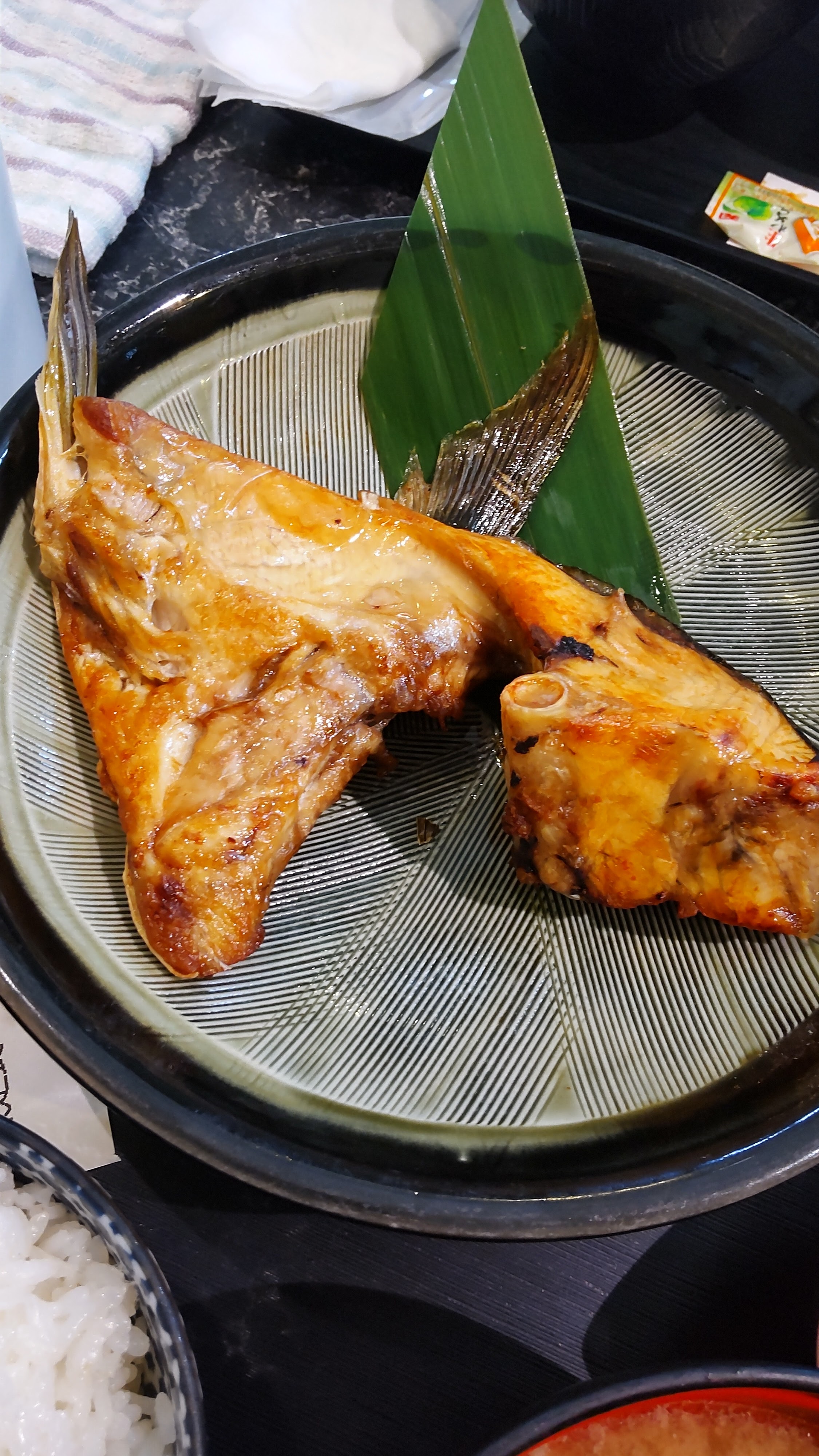 まぁ、鮭、もしくはサバと予測していたら、なんとブリのカマ焼きが出てきました。